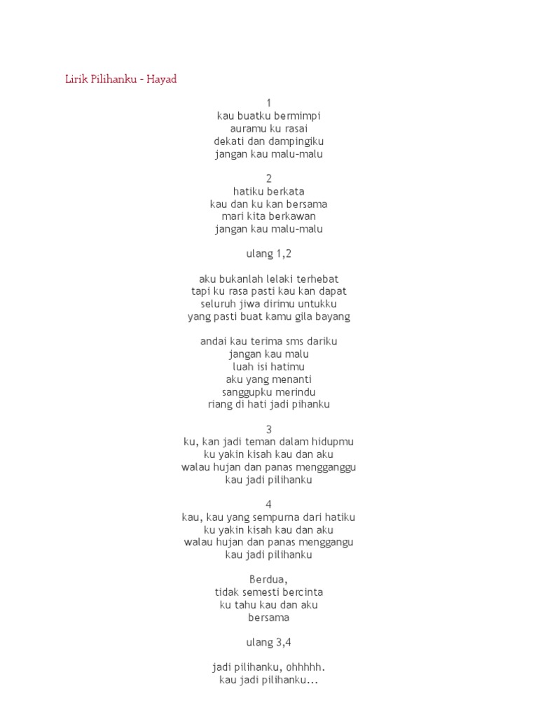 Lirik Pilihanku Hayad