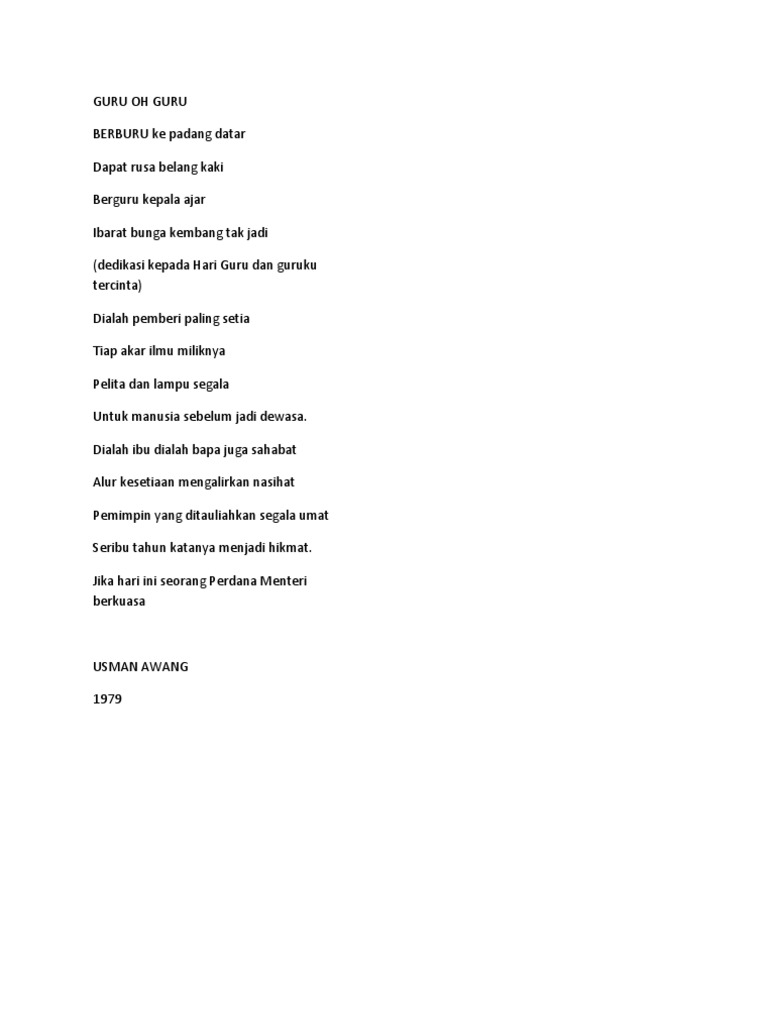 Sajak Guru Oh Guru Usman Awang 1979