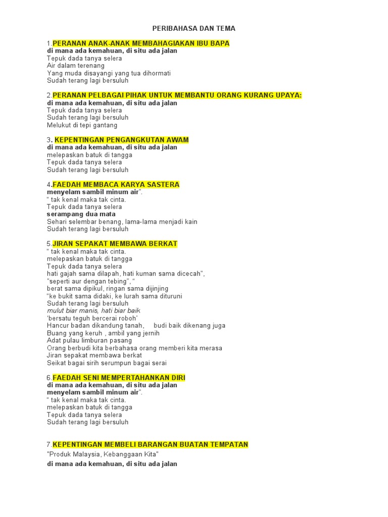 Peribahasa Mengikut Tema Pdf Document